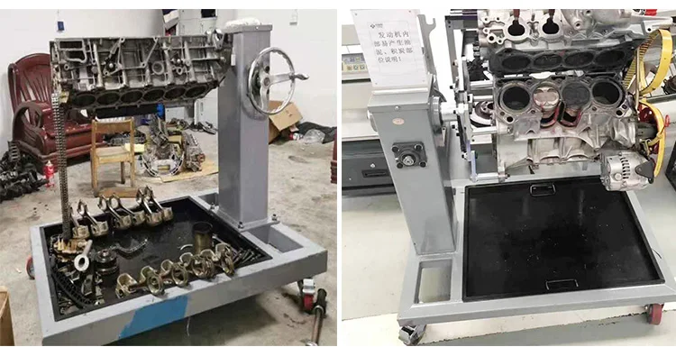 Car Engine Flipping Bracket Large Repair Gearbox Workbench Shelf Rotating Bracket Repair Equipment Tool Weight52Kg. Functions and purposes: Engine Maintenance,Disassembly and assembly Understand the internal structure of the engine through disassembly and assembly,Principle,And basic disassembly and assembly process.Equipped with removable engine roll-over stand,Manual Rotation,The surface is sprayed with high quality metal paint.,Adapt to teaching and training in various environments.Whole body steel structure,Strong and durable.With hair claws,Adjustable size,Convenient for various models.Engine attached roll-over stand,Controlled by Reducer,Flip easily,Convenient,Security;360Can be parked within degrees,Convenient engine disassembly and assembly training.You can check that the engine body accessories are complete.,Cylinder block and cylinder head without collision,Crack.The engine can be cleaned,Clean up scale inside and outside,Clean the engine surface;Bottom configuration4Universal wheel,Easy to move,Universal wheel with lock function,Cannot move after lock,Convenient to operate the engine.Roll-over stand portable500Kilogram weight 1,Applicable to various engine assemblies; 2,Engine assembly and roll-over stand are connected by bolts,Firm,Reliable; 3,Bench with universal wheel,Easy to move,Reliable performance,And have reasonable design,Beautiful,Practical and other features; 4,Disassembling the engine can be used for any axial movement, turnover and static; 5,Large area oil basin can be used as tools,Parts,Oil does not fall 6,Product Size:930mm×600mm×850mm(Long×Wide×High) Thickened square steel production ensures quality1,Fix the engine on the roll-over stand,Axial360Degree flip and can be locked at arbitrary,Make sure to flip easily,Self-locking and stable,Large operating space,Easy to disassemble;Students can carry out practical operation of engine disassembly and repair on the disassembly and assembly bench,Fully meet engine disintegration,Reassembly,Debugging,Requirements for the whole process of inspection. 7,Industrial modeling,Reasonable structure,Beautiful and elegant,Durable;