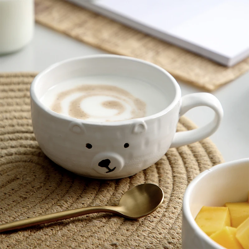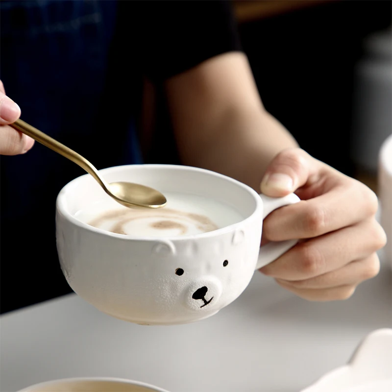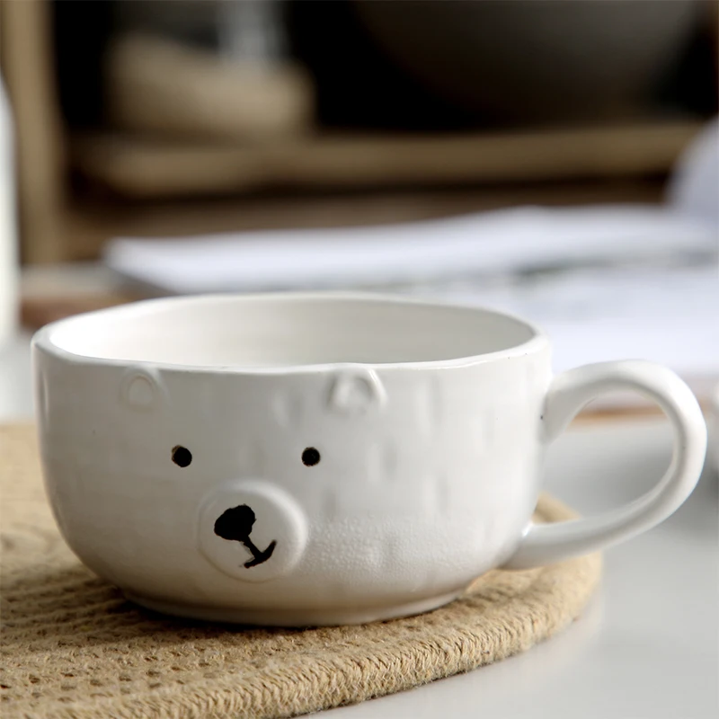 White Cute Bear Shape Ceramic Mug Ceramic Coffee Cups With Handle