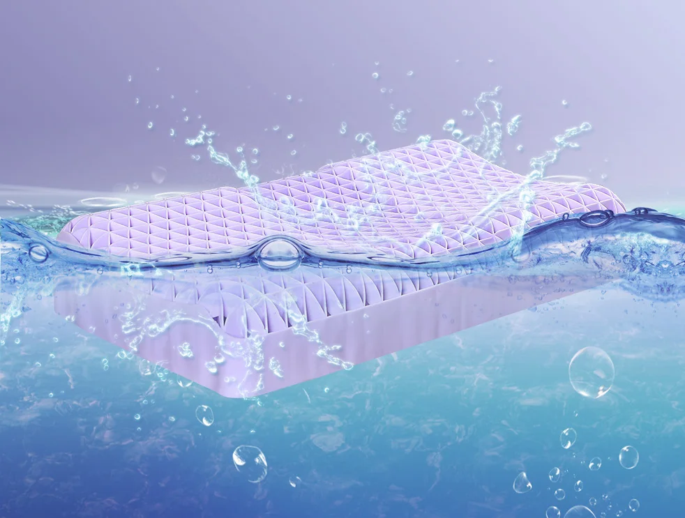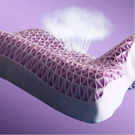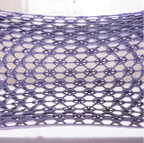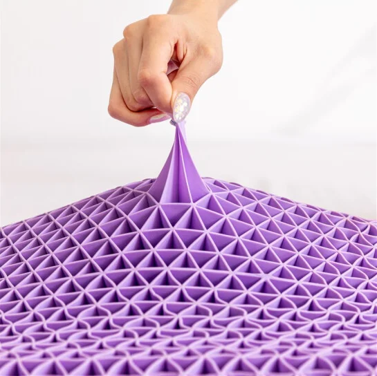 Griddesign, connected by thin wall, under pressure to bending, and after removing the pressue to get back to normal. The four sides are made ofhyper-elastic polymer, the middle is empty, the edge gridis a little harder than the middle, superior head-hugging support, comportable andbreathable.