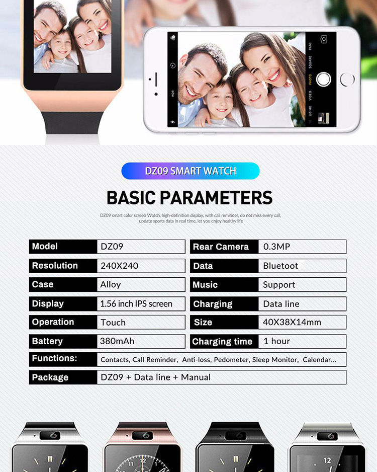 dz09 with camera smart watch
