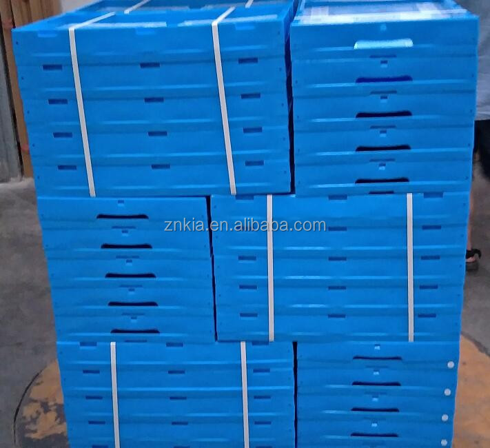 The folding basket is packaged with pallet and shrink wrap stretch film.