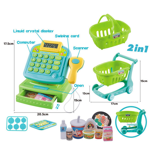 2 in1 Cash register with shopping cart