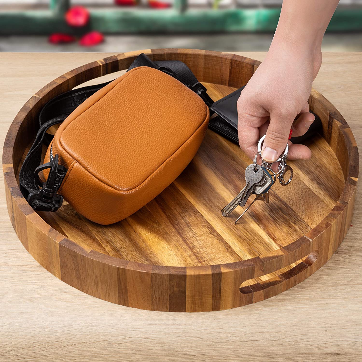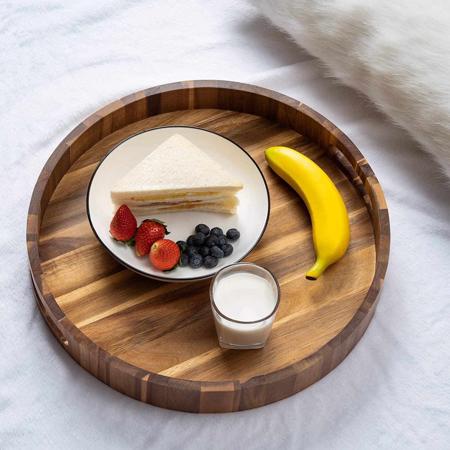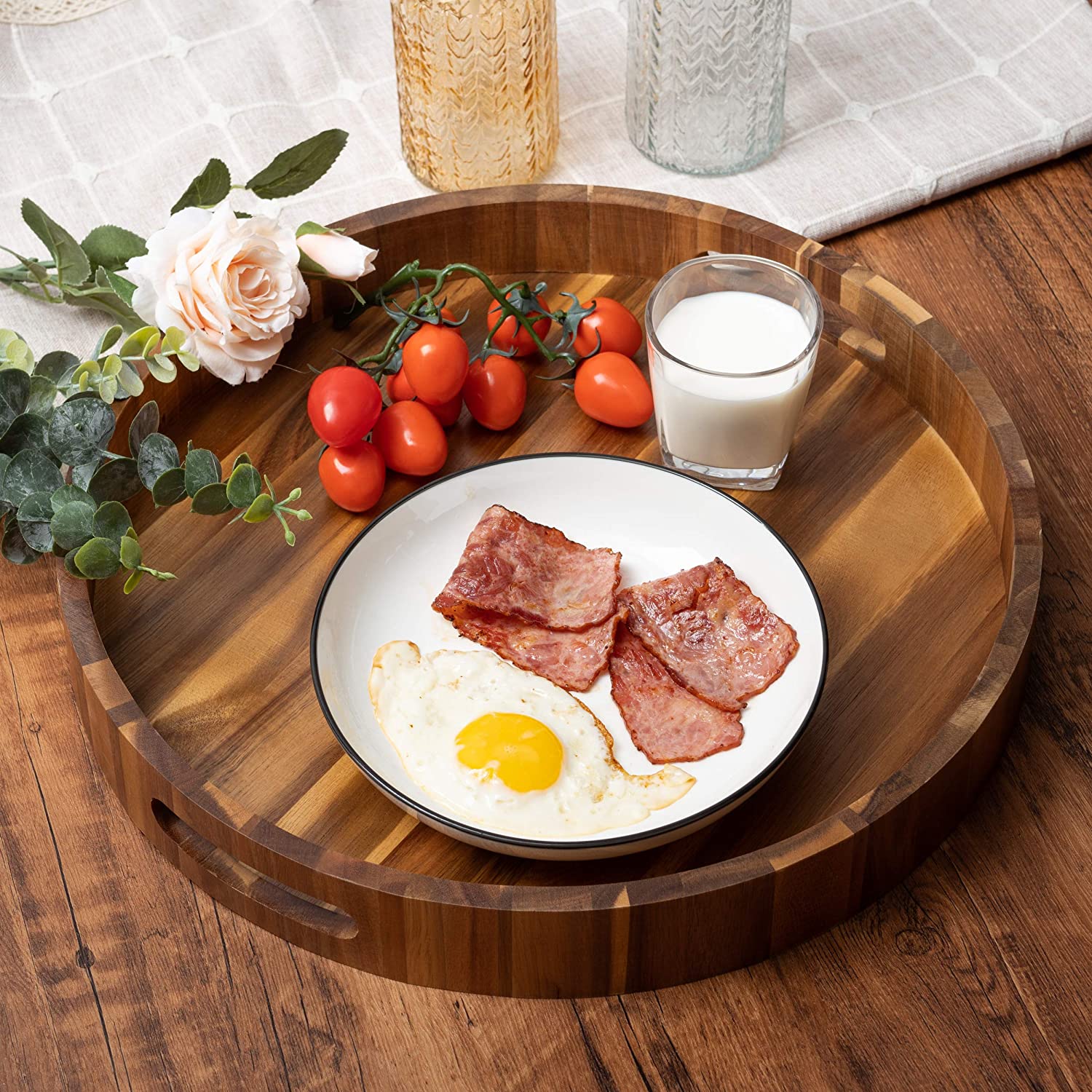Round wooden trays with handles