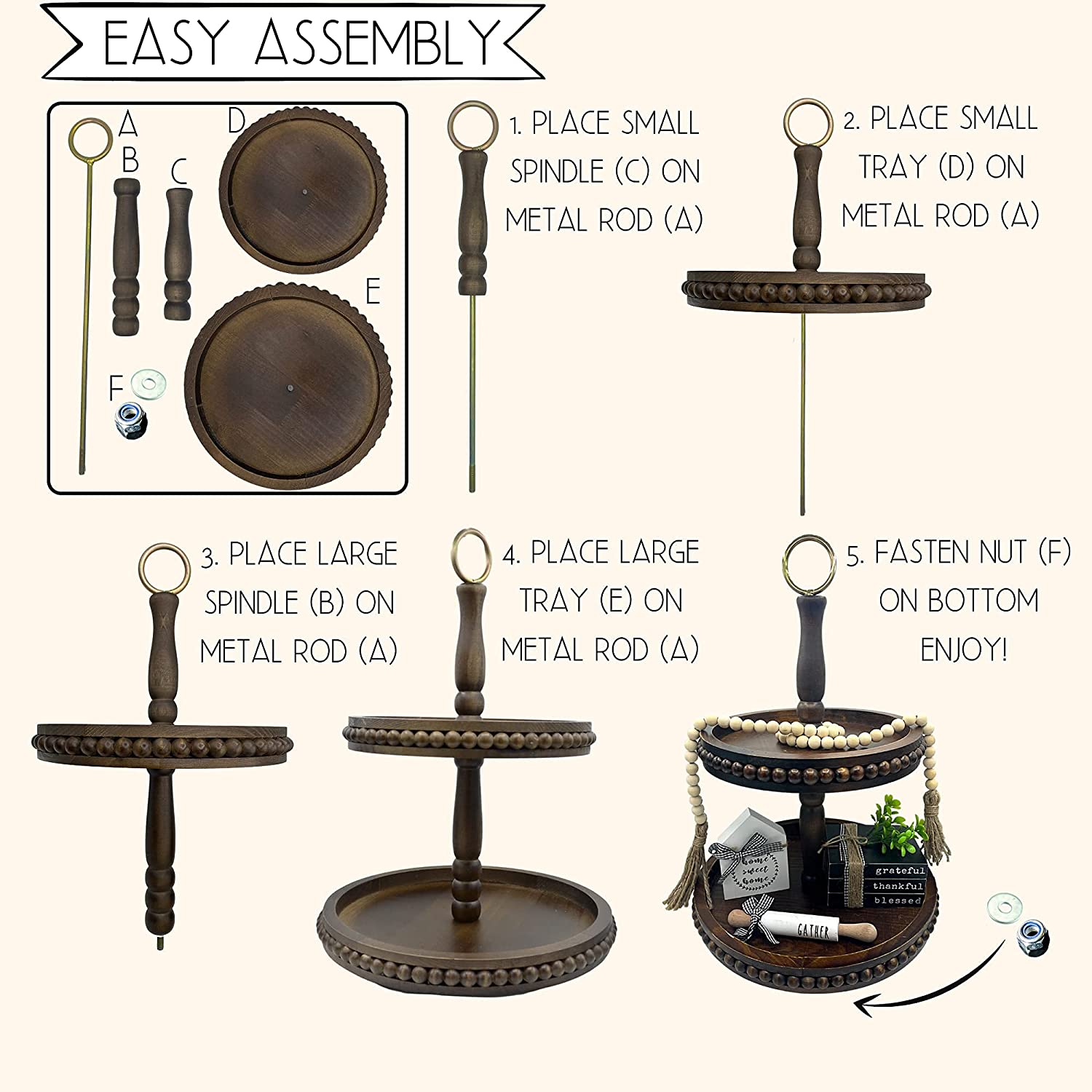 Wine Beaded Lazy Susan Tier Tray Wooden Tiered Tray with Tray D