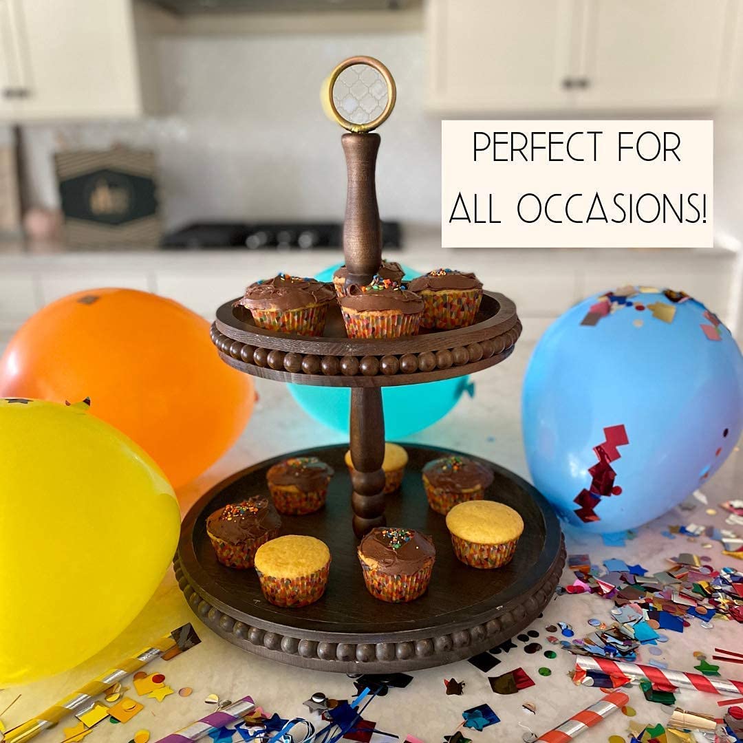 Wine Beaded Lazy Susan Tier Tray Wooden Tiered Tray with Tray Decor